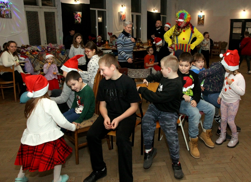 -To jest impreza integracyjna, żeby nikt w tym czasie nie był sam, żeby miał szansę ubrać choinkę, zjeść ciasteczko, wypić kawę czy herbatę. W przygotowaniu tego wydarzenia pomagali wolontariusze, stażyści oraz nasi podopieczni – mówiła Ewelina Gallas prezes fundacji. Dzieci i dorośli wspaniale się bawili, a o to dbał Piotr Zapart, który wystąpił w roli klauna. - Gości przyszło bardzo dużo i wszyscy świetnie się bawią. Seniorzy ubierają choinki, a młodsi chętnie biorą udział w konkursach: śpiewania kolęd, zabierania krzesełek czy tańcu z balonikami.
