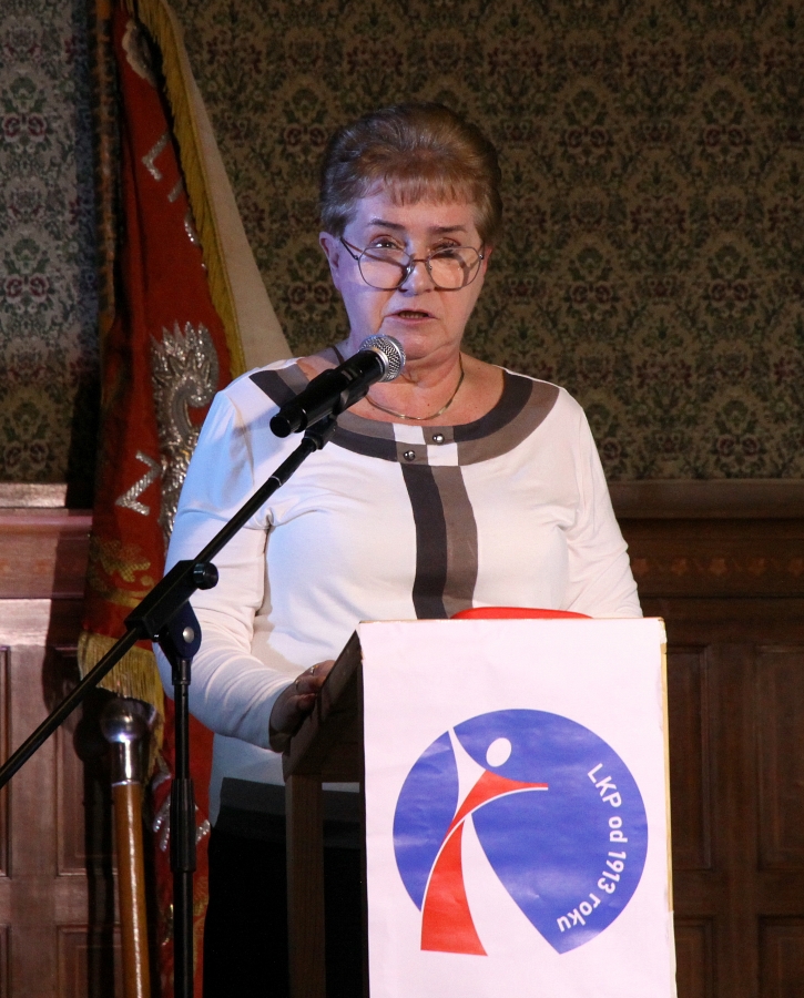 Przybyłych gości powitała Prezes Maria Jolanta Foksińska – Boguszewska. Pani Prezes przybliżyła historię powstania stowarzyszenia w 1945 roku. Z jej inicjatywy powstały Izby Matki i Dziecka. Dla kobiet organizowane były kursy zawodowe przygotowujące do pracy w różnych zawodach. Prowadzona była też walka z analfabetyzmem. Dla dzieci organizowano kolonie i półkolonie. Członkinie Ligi Kobiet angażowały się w inicjatywę budowy Szpitala Pomnika- „Centrum Zdrowia Matki Polki”, w którym leczą się pokolenia kobiet i dzieci. W chwili obecnej oddział prowadzi poradnię prawno – społeczną, punkt wsparcia rodziców i dzieci niepełnosprawnych, punkt wsparcia seniorów, oferuje bezpłatne obdukcje oraz porady psychologiczne i mediacyjne. Za swoją działalność został odznaczony w 1965 r. Honorową Odznaką Miasta Łodzi, a w roku 2000 Odznaką Za Zasługi dla Miasta Łodzi.