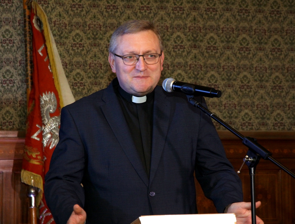 W imieniu kard. Grzegorza Rysia i własnym ks. kan. Wiesław Kamiński Dyrektor Wydziału Duszpasterskiego Archidiecezji Łódzkiej złożył najlepsze życzenia wszystkim paniom pracującym na rzecz Ligi Kobiet. - Wiele pań, które widzę na tej sali, to są moje parafianki, współpracujemy na co dzień staramy się robić coś dobrego. Gdy dzwonimy do siebie pozdrawiamy się hasłem „Liga rządzi, Liga radzi, Liga nigdy Cię nie zdradzi” (z filmu Seksmisja). Co w Lidze jest takiego dla mnie inspirującego? Przede wszystkim charyzma i energia, zawsze podziwiam siłę, która bije od pań i której można się uczyć. Jako, że jestem pszczelarzem, żeby Liga miała energię, a przynajmniej zarząd, to przyniosłem słoik dobrego miodu z mojej pasieki – powiedział ks. Wiesław.