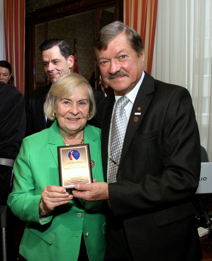 W podziękowaniu za serce i szczególną pomoc Elżbieta Róża Jankowska Honorowa Przewodnicząca LKP, poseł na Sejm IV i V kadencji, od 52 lat członkini Ligi Kobiet, wręczyła pamiątkowe tabliczki m.in.: Hannie Zdanowskiej, Małgorzacie Moskwie –Wodnickiej, Krzysztofowi Kwiatkowskiemu, ks. kan. Wiesławowi Kamińskiemu, Jolancie Chełmińskiej, Danucie Majdańskiej oraz Jadwidze i Markowi Kamińskim.