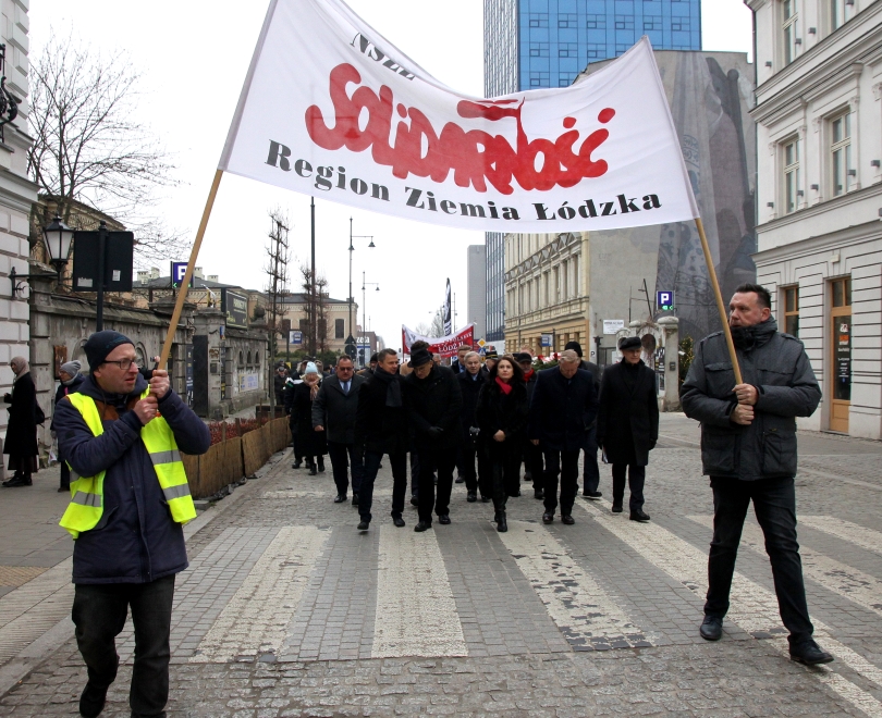 Po odśpiewaniu hymnu głos zabrał Waldemar Krenc Przewodniczący Zarządu Regionu Ziemi Łódzkiej NSZZ „Solidarność”, który przypomniał, że stan wojenny trwał 586 dni.