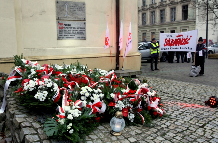 Uroczystość zakończyła się złożeniem kwiatów przez władze państwowe, miejskie, samorządowe oraz delegacje Solidarności z różnych zakładów pracy.